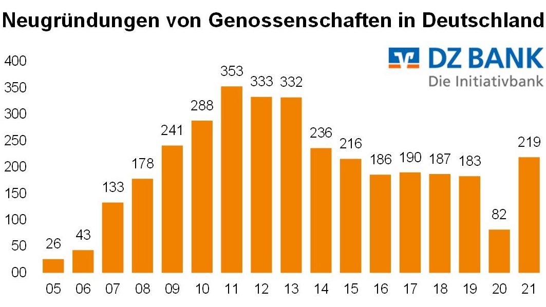 Im vergangenen Jahr gab es 219 Genossenschaftsgründungen – das sind 137 mehr als im stark gebeutelten Vorjahr. Zudem übertrifft das den Durchschnitt der letzten vier Jahre vor der Pandemie um fast 18 Prozent. „Das ist eine erfreuliche Nachricht und zeigt, dass Genossenschaften weiterhin eine beliebte Organisationsform von Menschen und Unternehmen sind, um gemeinsame Ziele leichter zu erreichen. Die positive Entwicklung ist umso bemerkenswerter, weil es weiterhin Kontaktbeschränkungen gibt, die sich negativ auf Versammlungen auswirken. Die sind für Genossenschaften aber essentiell“, erklärt Volkswirt Michael Stappel, der den jährlichen Genossenschaftsbericht erstellt. Auch die wirtschaftliche Unsicherheit sei weiterhin hoch. „Viele Gründer überlegen es sich aktuell zwei Mal, ob sich ein genossenschaftliches Geschäftsmodell auch wirklich trägt“, ergänzt Stappel.